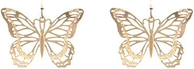 Gemstone Fashion Butterfly Filigree Earring - Lightweight Gift, Fish Hook, Cutout, Stylish Elegant Gold, Base Metal