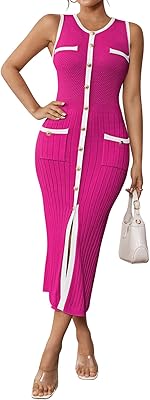 Pink Queen Womens Elegant Sweater Dress Sleeveless Slim Fit Bodycon Midi Dresses
