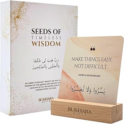Islamic Wisdom Cards Beautiful Gift Set with 40 Quran & Hadith Based Quotes for Spiritual Reflection, Ramadan & Eid | Premium Box Wooden Stand